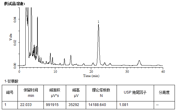Platisil C18检测玄麦甘桔胶囊中甘草酸和哈巴俄苷。