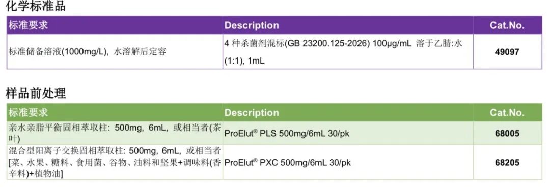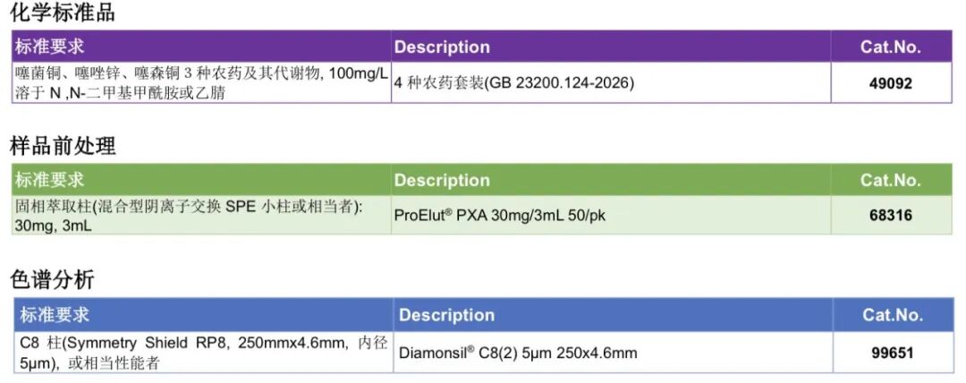 迪马科技紧密跟踪新国标步伐,快速制定GB 23200.122/123/124/125-2026相关产品配制方案,助您迅速完成产品选择及方法重现。