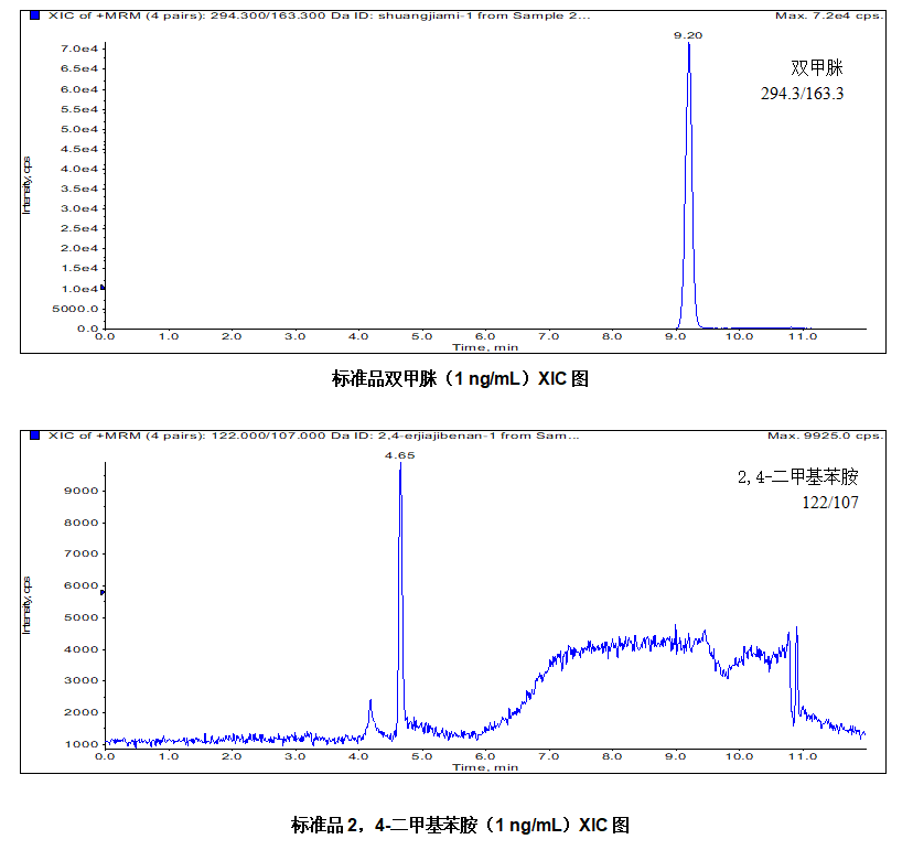 双甲脒及2,4-二甲基苯胺的XIC 图