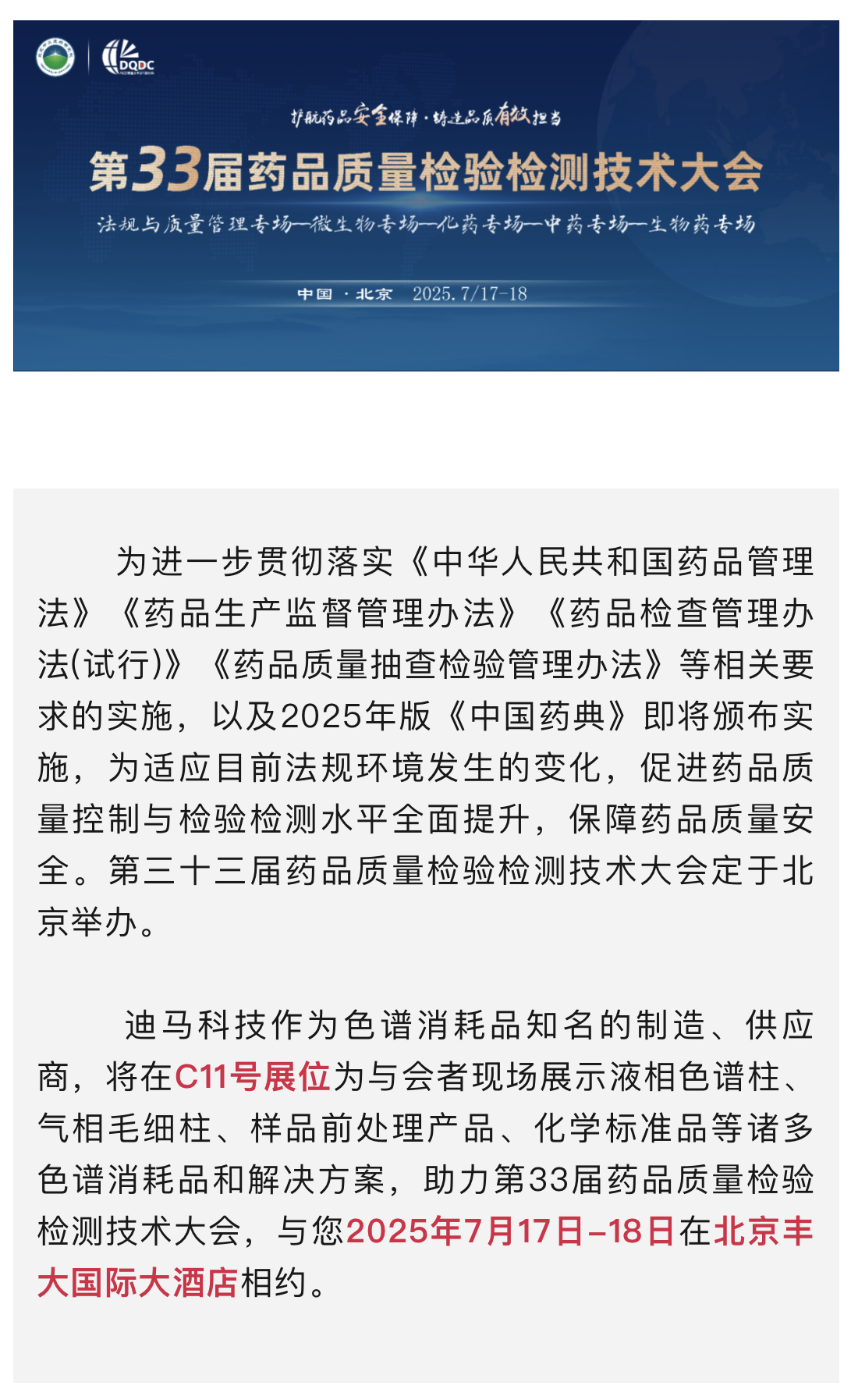 迪马科技与您北京相约:第33届药品质量检验检测技术大会