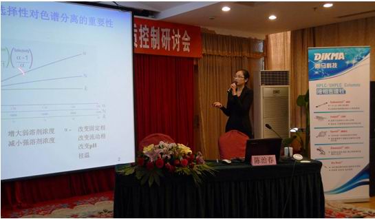 作为全球色谱消耗品领先的制造商,迪马科技一直致力于为食品、药品检测行业提供完善的技术服务,除与参会专家进行技术交流外,迪马科技技术应用工程师还与广大与会者共同分享了《Dikma 高效液相色谱柱技术应用于药品杂质控制分析》技术报告。