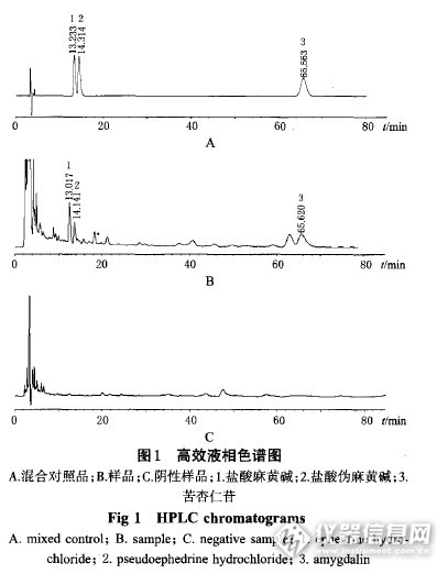 关键词: 高效液相色谱法 小儿清热止咳口服液 盐酸麻黄碱 盐酸伪麻黄碱 苦杏仁苷