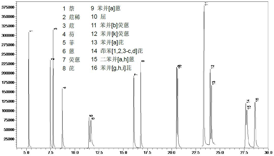 本方案适用于婴儿奶粉中萘、苊稀、苊、芴、菲、蒽、荧蒽、芘、苯并[a]蒽、屈、苯并[b]荧蒽、苯并[k]荧蒽、苯并[a]芘、茚苯[1,2,3-c,d]芘、二苯并[a,h]蒽和苯并[g,h,i]苝的检测。