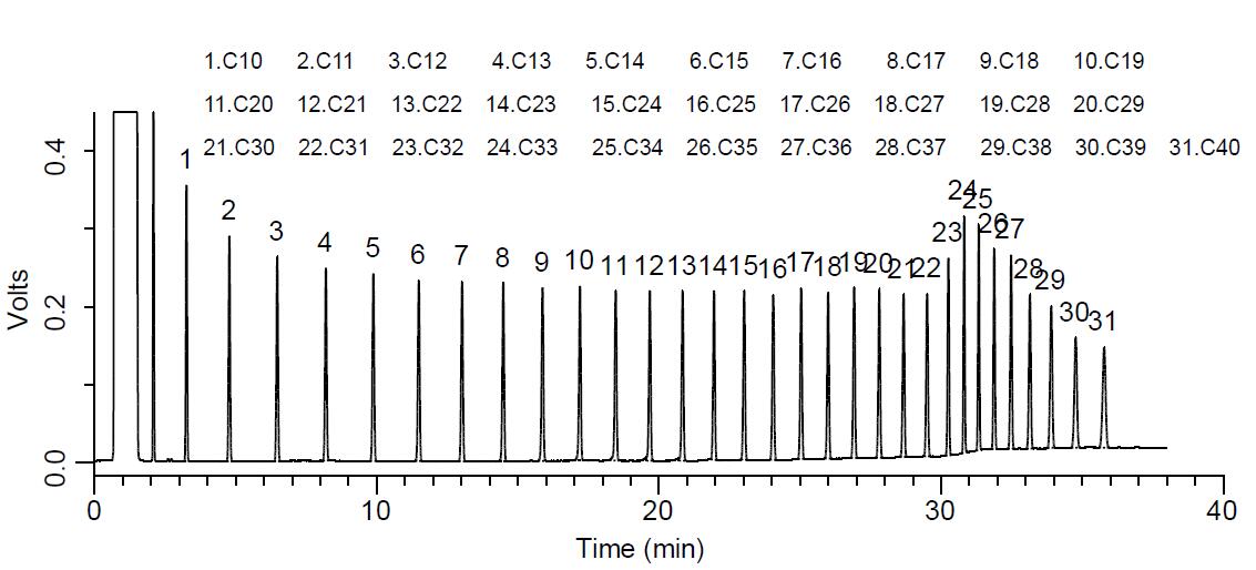 31种石油烃C10-C40标准(50 μg/mL)气相色谱图