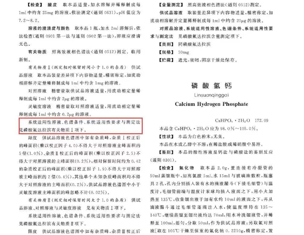 磷酸氟达拉滨、注射用磷酸氟达拉滨的2020药典截图: