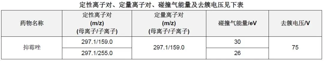 标准中间液:分别吸取适量标准储备液,用甲醇配制成10.0μg/mL和0.5μg/mL的标准中间液。