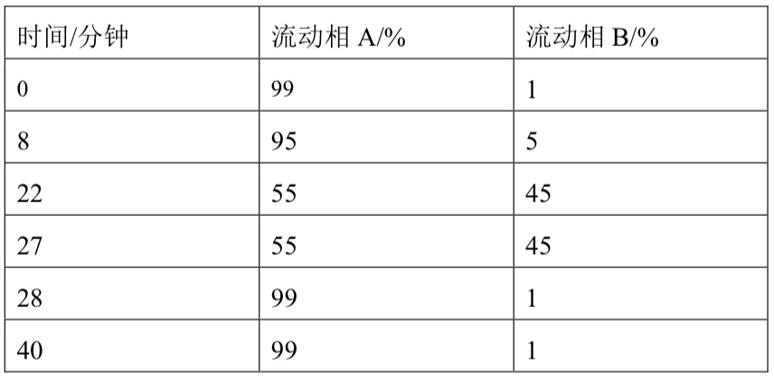 流动相:A-10mM磷酸二氢钾溶液(用磷酸调节pH值至2.3),B-乙腈-流动相A(55:45)
