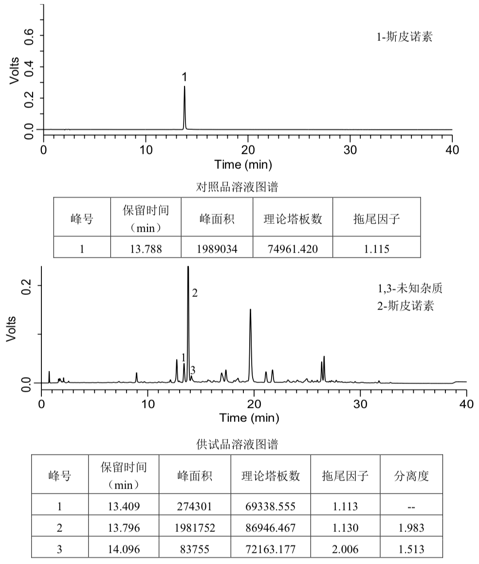 进样量:斯皮诺素:10μL,酸枣仁皂苷A:供试品溶液10μL、对照品溶液15μL