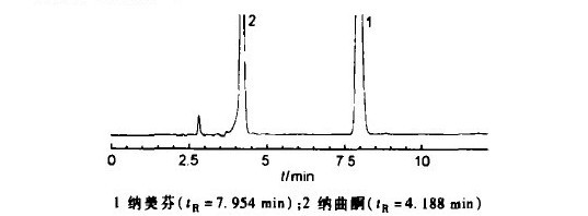 摘要: 目的: 建立高效液相色谱法测定新药盐酸纳美芬及其注射剂的含量和其有关物质。方法: 采用迪马公司C18钻石色谱柱(250mm x 4.6mm , 5μm); 流动相: 乙睛—0.05 mol/L的磷酸缓冲液(20:80), 其中1000mL 缓冲液中含有7.8g磷酸二氢钠和2mL的三乙胺, 用85%的磷酸调节pH 为4.2 ±0.02;流速: 1.0 mL/min;检测波长为210 nm。结果: HPLC 法测定的线性范围为21-126 μg/mL, r = 1.000, 最低检测限为0.2ng, 本方法的重复性和精密度良好(RSD<2%),平均回收率为99.30%-99.42%。结论: 采用HPLC法测定盐酸纳美芬及其注射液的含量和有关物质, 方法简便, 结果准确。