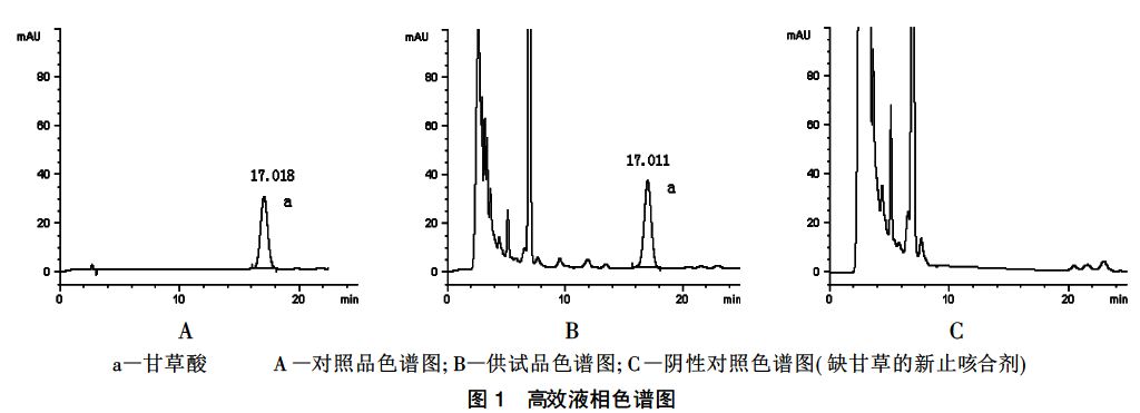 摘要:目的:建立高效液相色谱法测定新止咳合剂中甘草酸的含量.方法:采用Dikma钻石C18色谱柱(4.6 mm×250 mm,5μm);流动相为甲醇—0.2 mol/L醋酸铵溶液—冰醋酸(63:37:1);检测波长为250nm,流速为1.0 mL/min,柱温为30℃.结果:甘草酸进样量在0.221~6.630μg(r=0.99998)范围内与峰面积线性关系良好,平均加样回收率为99.15%,RSD=0.71%(n=9).结论:本法简便、快速、专属性强、重现性好;可作为新止咳合剂的质量控制方法.