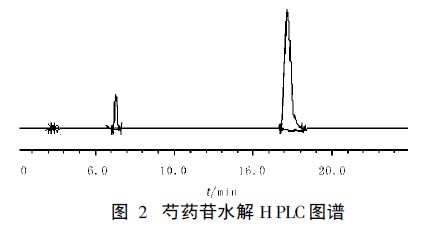 摘要: 目的考察芍药苷在不同pH 条件下的水解情况.方法Diam onsil C18色谱柱(250 × 4.6 mm, 5μm), 流动相为乙腈-0.1%的甲酸水溶液(15:85), 检测波长为230 nm,进样量为10 μL, 柱温为室温, 流速为1.0mL/min.结果芍药苷对照品在0.0215~0.215μg范围内, 进样量与峰面积间呈良好的线性关系, r= 0.9999, 并得到不同pH 条件下的水解动力方程.结论芍药苷的水解符合一级动力学模型.在不同pH条件下,芍药苷的水解速度不同.