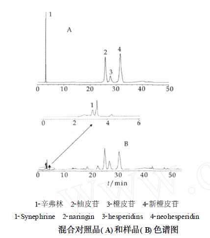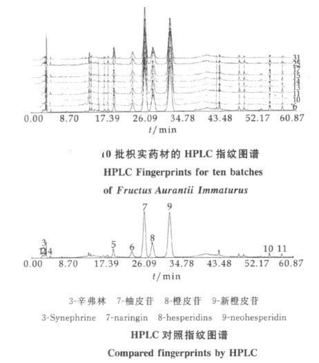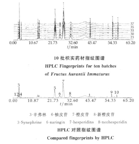 摘要: 目的 建立枳实药材HPLC指纹图谱分析方法.方法 采用Diamonsil C18柱(250 ×4.6 mm , 5μm) ,以乙腈-0.01%磷酸二氢钠水溶液梯度洗脱,测定了36 批枳实药材的指纹图谱.应用相似度分析,聚类分析和主成分分析,对枳实药材进行分类,建立枳实药材指纹图谱的共有模式,并应用主成分分析对共有模式进行研究.结果在选定的色谱条件下,得到两类枳实药材HPLC指纹图谱;根据相似度分析,聚类分析和主成分分析的结果,将36批药材分为2 类,分别建立指纹图谱.结论 应用本方法评价枳实药材的质量是可行的.