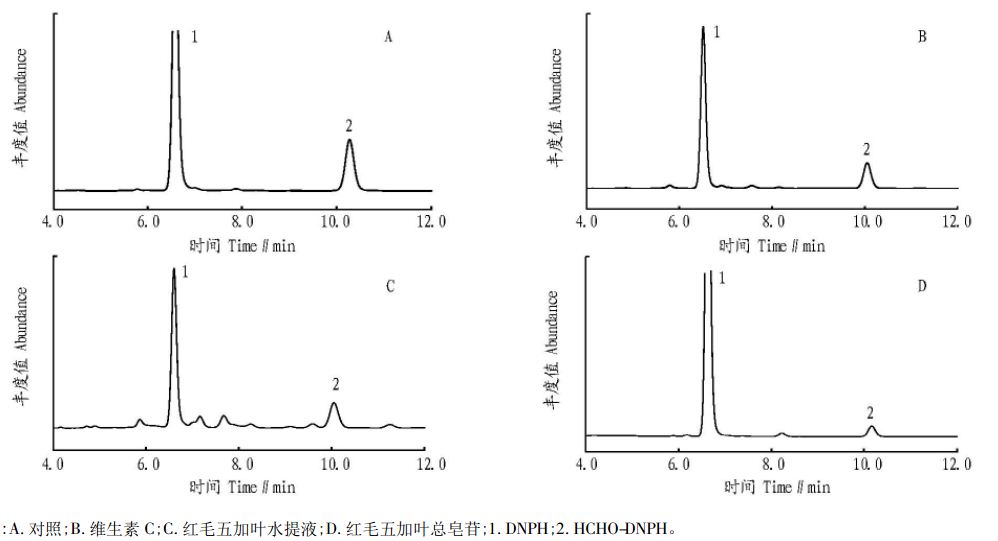 摘要:[目的]测定红毛五加叶水提液对羟自由基的清除率并评价其抗氧化活性.[方法]利用Fenton反应产生羟自由基,用二甲亚砜(DMSO)捕获羟自由基并与之反应生成甲醛,甲醛经2,4-二硝基苯肼衍生成相应的苯腙,通过HPLC检测加或不加样品时该苯腙的峰面积的变化,从而计算红毛五加叶水提液对羟自由基的清除率.色谱条件:色谱柱为Diamonsil C18(250 mm×4.6 mm5,μm),流动相为乙腈-水(65∶35,V/V),流速为0.8 mL/min,检测波长为365 nm.[结果]Fenton反应体系为2.0 mmol/L Fe2++107.7 mmol/L H2O2+225.2 mmol/L DMSO;在该反应体系中红毛五加叶水提液清除羟自由基的IC50为0.67 mg/ml(即每1 ml含药材量为0.67 mg);红毛五加叶总皂苷是清除羟自由基的活性成分.[结论]红毛五加叶水提液能够清除Fenton反应产生的羟自由基,具有较强的抗氧化活性.