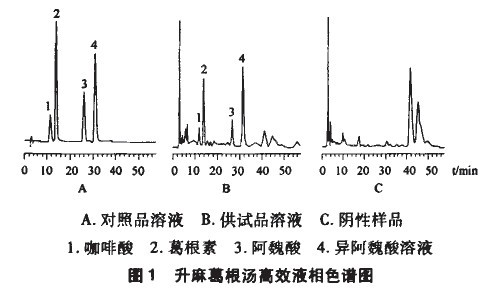 | 摘要: 目的:建立HPLC法同时测定升麻葛根汤中4种有效成分的含量.方法:采用Diamonsil C18色谱柱(250 mm x4.6mm,5um),流动相:甲醇-乙腈-[1.6%冰醋酸的0.1 mol/L醋酸铵溶液](12:7:81),流速:1.0 mL/min,检测波长:320 nm.结果:咖啡酸的线性范围为0.2~4 mg/L(r=0.999 6),平均回收率为104.0%,RSD为0.59%;葛根素的线性范围为10~200 mg/L(r=0.999 5),平均回收率为99.8%,RSD为0.63%;阿魏酸的线性范围为1-20 mg/L“(r=0.999 5),平均回收率为102,8%,RSD为0.96%;异阿魏酸的线性范围为2-40 mg/L(r=0.999 6),平均回收率为98.0%,RSD为l-37%(n=9).结论:方法简便、快捷、重复性好,可用于该汤剂的质量控制. |